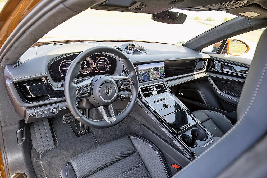 究極のドライビングプレジャーのために、これほど多くの個別設定が本当に必要なのだろうか?──非常に良い質問だ。そしてその疑問は、パナメーラに乗れば必ず湧いてくる。数えきれないメニューとサブメニュー、その間の複雑な連携、さらにサブメニューの中のサブメニュー……。そうした操作体系に慣れた後でパナメーラに乗ると、まるで数時間ソースコードを読んだあとに、突然プレーンテキストを見たような感覚に陥る。ステアリング上のたったひとつのダイヤルが、複雑な高性能システムを裏で統括している──それだけで完結するのだ。そして驚くべきことに、それは完璧に機能するだけでなく、BMWでは夢に見るしかないほど広いドライビングスタイルの幅をカバーしている。