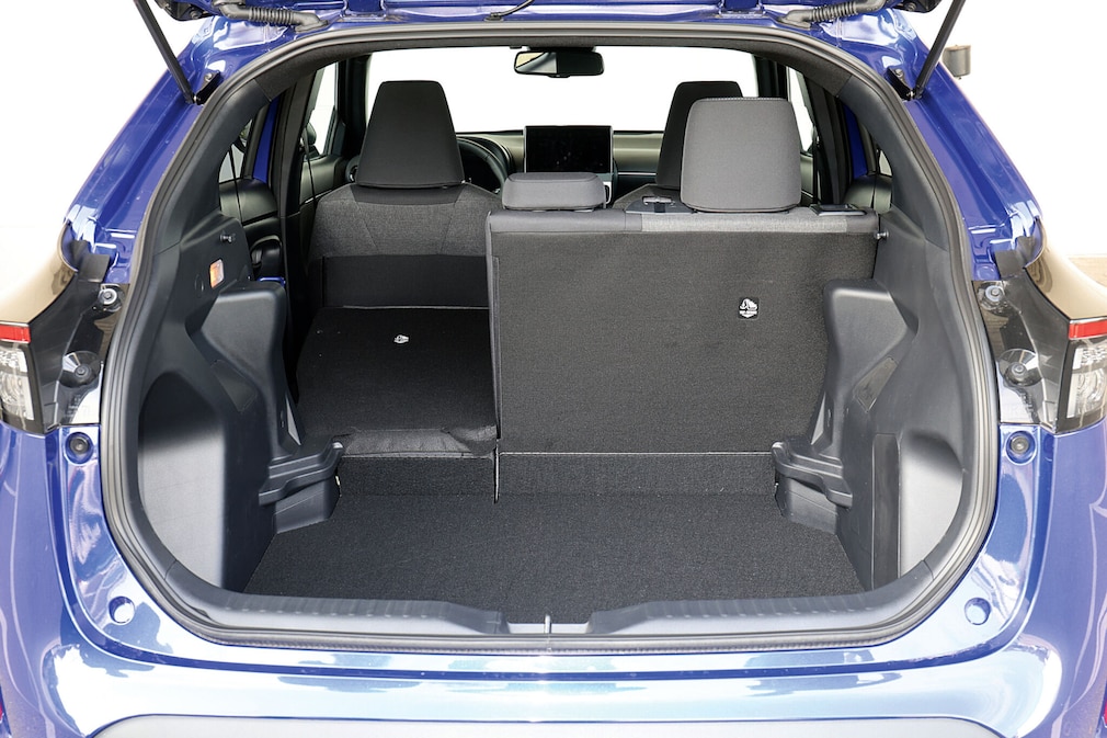 ヤリス クロスは、日常的な使い勝手の良さでその欠点を補っている。車内(後部座席も)への乗り込みは簡単で、シートは適度に硬めのクッション性があり、サイドサポートは控えめ(さらに発泡材も少ない)だが、十分なサポート力を提供している。後部座席を折りたたむことで、トランクの容量を最大768リットルまで拡大できるが、その操作は、滑らかなメカニズムのおかげで、あっという間に完了する。