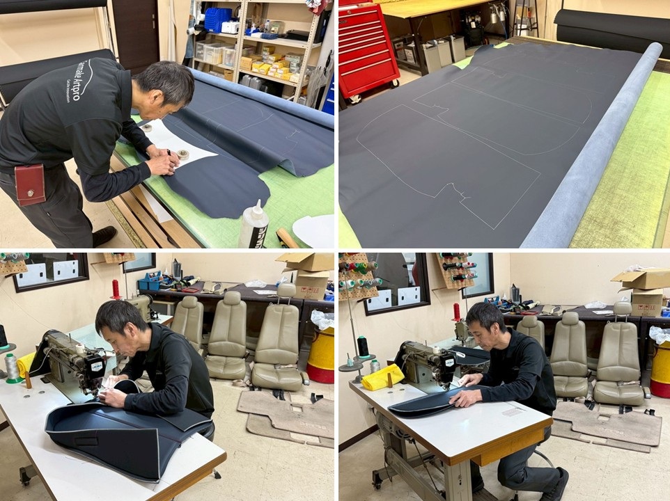 イタリアから空輸されたその素材は、柔らかな手触りと上品な艶を持ち、触れるだけでラグジュアリーカーを連想させる。