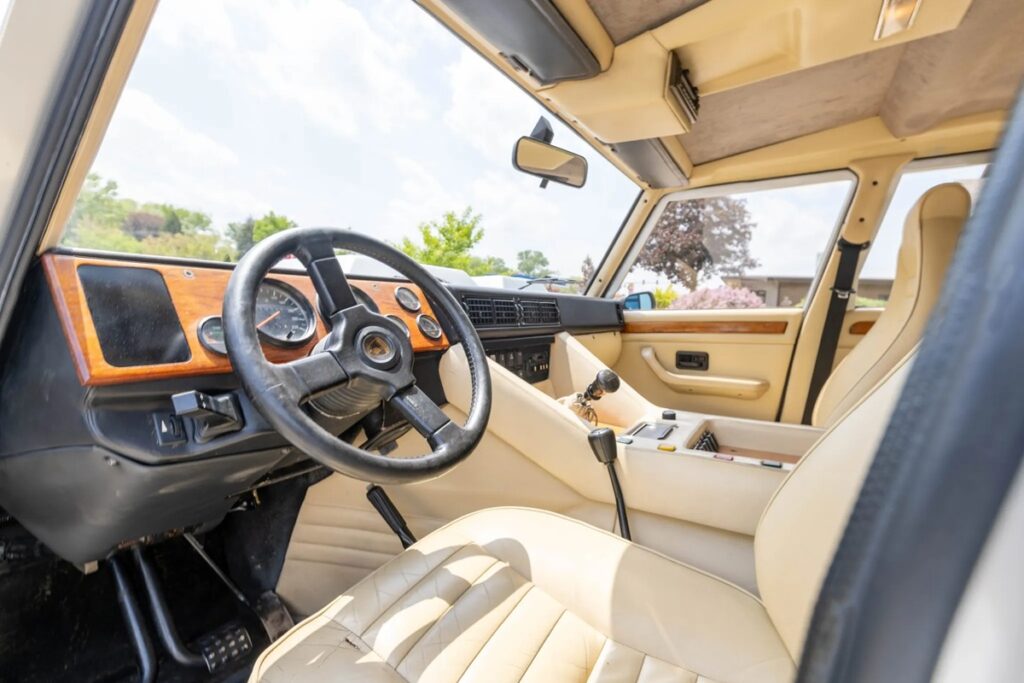 外観は装甲車のように見えるが、インテリアは80年代の気品ある魅力にあふれている。ベージュのレザーシート、ダッシュボードやドアのウッドパネル、クラシックなナルディのステアリングホイールなどが特徴だ。その他の仕様としては、エアコン、パワーウィンドウ、カセットラジオ、荷台の左右にあるベンチシートなどが挙げられる。