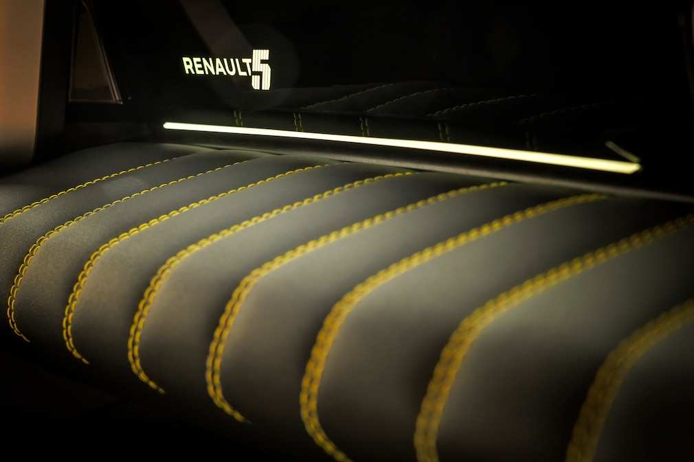ルノーは、旧型「R5」の細部を数多く新世代モデルに継承している。その例としては、ダッシュボードの装飾ステッチや、「R5ターボ」から着想を得た、幅広のサイドサポートを備えた新型シートなどが挙げられる。素材の選択も現代的だ。主に合成皮革と再生素材が使用されている。撮影車両は、黄色と黒の色調で、粒状の質感を持つシートが採用されており、シートは快適で、試作車としては高品質な仕上がりとなっている。