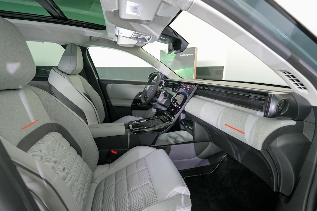 中級グレードの「プラス」には、フロントパーキングアシストも装備されている。AI(人工知能)(ChatGPT)がインフォテインメントシステムに統合されており、スマートフォン用誘導充電、キーレススタート、アンビエント照明などのその他の快適装備も備わっている。リヤウィンドウは着色されている。
