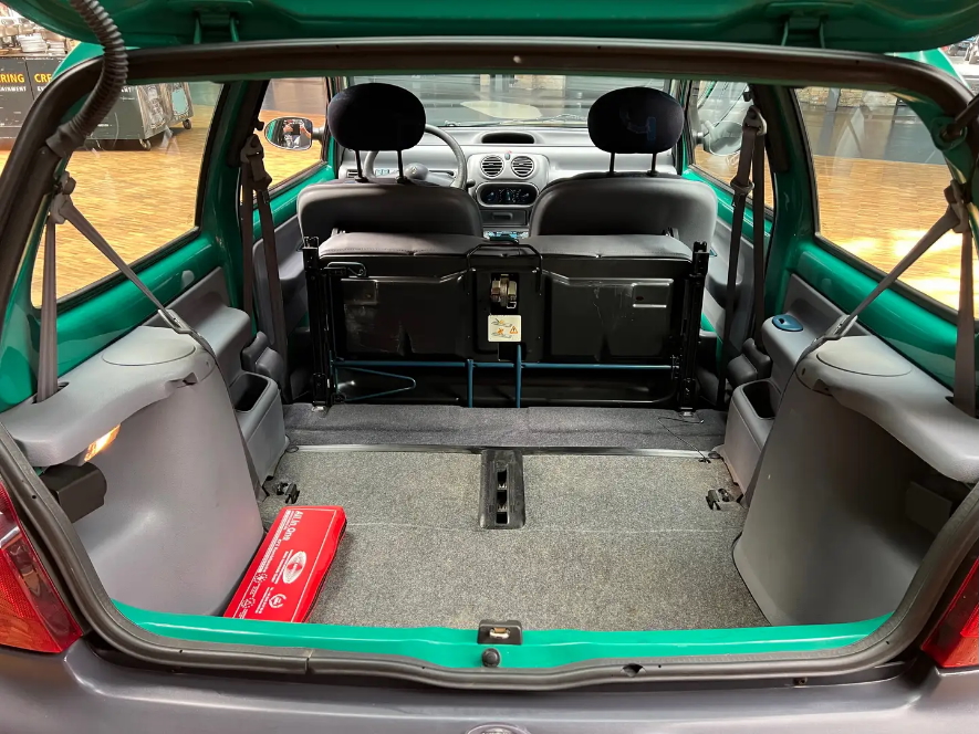 この「トゥインゴ」には折りたたみ式ルーフは装備されていないが、その代わりに、コレクターが求める要素をすべて備えている。ポップなカラー、インテリアの青いプラスチックの装飾、エアバッグのない2本スポークのステアリングホイール、そして折りたたみ可能なフロントシートにより、トゥインゴはあっという間にダブルベッドに変身する。すでに述べたように、これ以上のカルト的な車はなく、初期の「トゥインゴ」がこれ以上安くなることもまずないだろう。