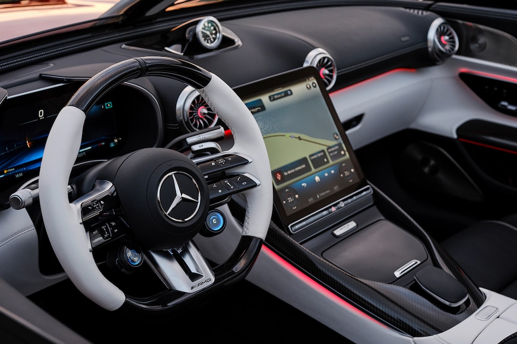 「メルセデスAMG ピュアスピード」が轟音を立てて通り過ぎると、周囲の人々は目を大きく見開き、携帯電話のカメラを取り出し、手を振って挨拶する。フロントガラスもルーフも、そしてあらゆる羞恥心も取り払ったオープンタイプの2シーターは、中毒性がある。