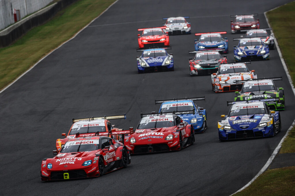 GT500クラス スタートシーン ニスモ勢2台が好調なスタートダッシュを決めたのだが。