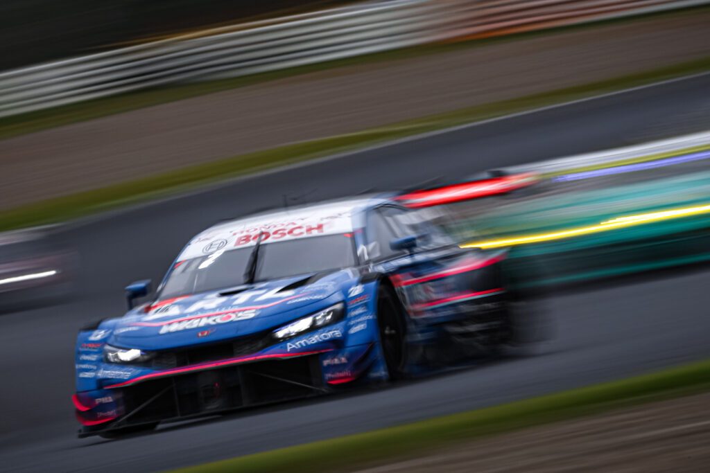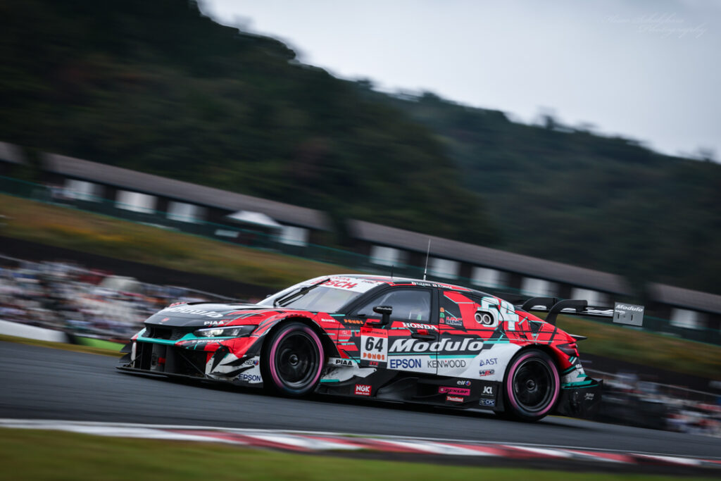 GT500クラス8番手スタートから好ペースで走り続け、最終LAPで前車を見事パスし2位でチェッカーを受けたNo.64 Modulo CIVIC TYPE R-GT 伊沢拓也/大草りき。