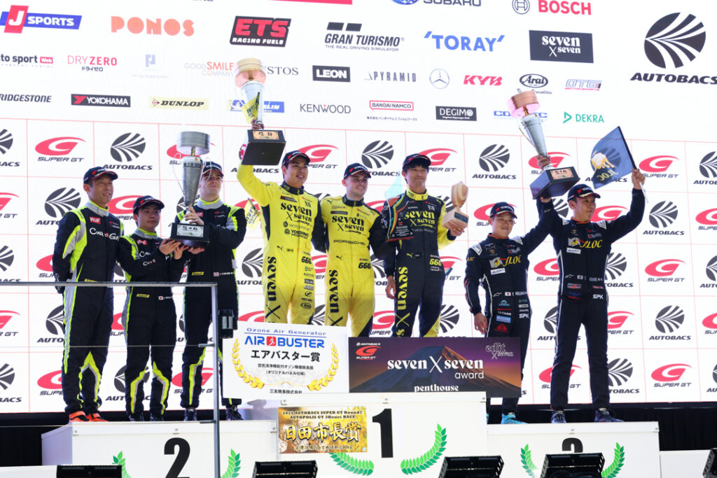 そのまま快走を続けたNo.666が見事チーム初優勝を飾った。2位はチェッカー後のクーリングラップ途中でガス欠でストップするほどギリギリだったNo.7 CARGUY Ferrari 296 GT3(ザック・オサリバン/小林利徠斗/澤圭太)。3位はペースと作戦は完璧だったので非常に悔やまれるレースとなったNo.0 VENTENY Lamborghini GT3(小暮卓史/元嶋佑弥)が入った。