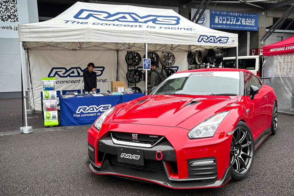 「オールメイド・イン・ジャパン」を貫く日本を代表する ホイールブランドの「RAYS(レイズ)」のブースには、「RoadandSky」のデモカーであるR35型日産GT-R NISMOに「RYUKI x RAYS VOLK RACING GT090」の組み合わせが目を引きます。