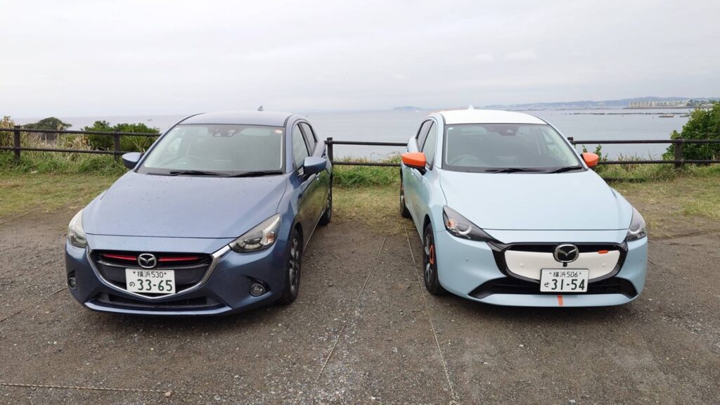 さて今回の一週間の試乗中には、MX-30の時にご一緒いただいた、JAMSTECで有人潜水調査船「しんかい6500」の元パイロットを長年務めていた田代省三さんにも一緒に乗っていただいた。なぜなら田代さんは長年デミオのディーゼルを所有され、長距離ドライブなどが大好きなこともあってかその走行距離はすでに11万キロを達成しているほどの愛用ぶりだからだ。まずは乗り込む前にデミオとマツダ2との違いを確認しながら三浦半島をぐるっと回ってみた。田代さんの感想を以下にまとめる。