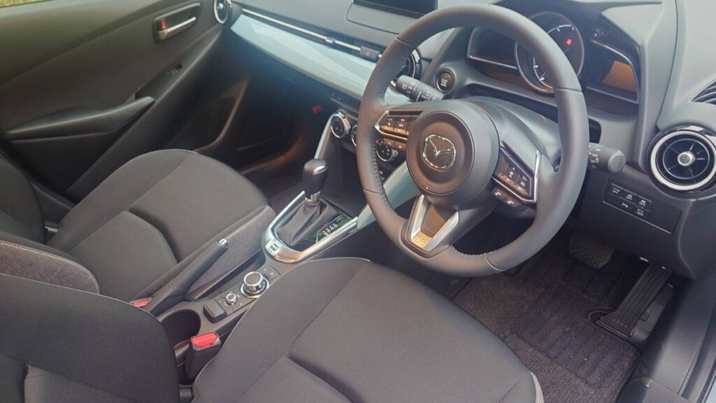 というお話はともかく、今回乗ることになったマツダ2は11年目の最新モデルで、もはや大好きだったディーゼルがラインナップから無くなってしまったため、普通の1.5リッターのスカイアクティブG、つまりロードスターと基本的に同じ110PS 142Nmの4気筒ガソリンエンジンモデルに6速オートマティックトランスミッションの組み合わされたモデル「マツダ 2 15 BD i Selection」である。