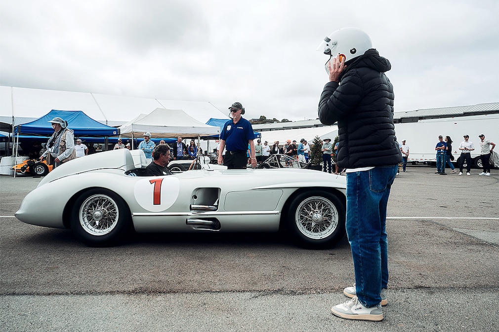 事前にサーキットで「スターリング モス」を走らせる機会があったのは、実に幸運だった。時を3時間巻き戻そう。私はラグナ セカ レースウェイのパドックに立ち、やや大きめのヘルメットを被り、「メルセデス300 SLR W196 Sに乗り込もうとしている。1955年のミッレ ミリアで、スターリング モスとデニス ジェンキンソンがまさにこの「SLR」で優勝し、現在に至るまで破られていない記録を打ち立てたのだ。