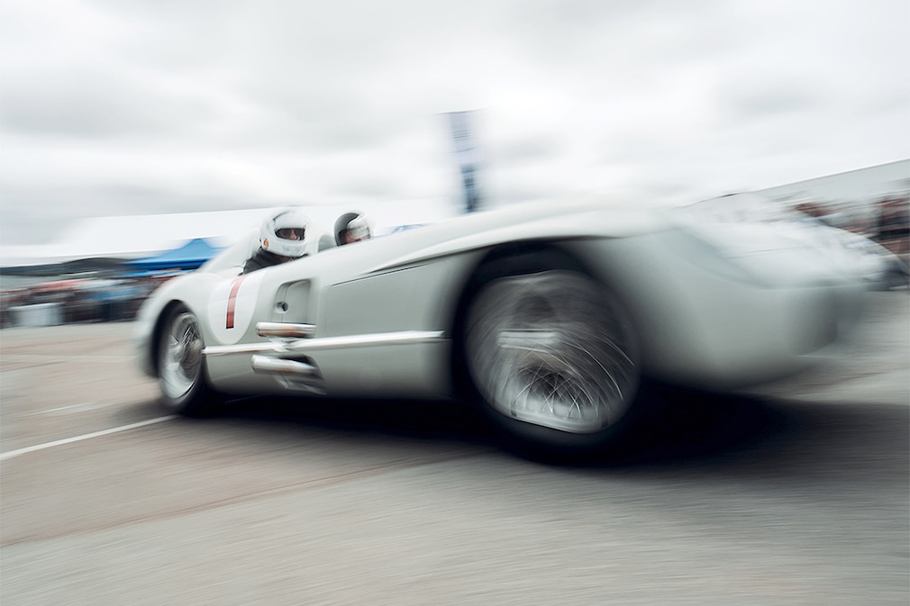 70年後の今、私は事実上“値段の付けようがない”シルバーアローの助手席に座るという特権を得た。ステアリングを握るのは、このクルマを知り尽くした数少ない人物のひとり、ウーヴェだ。彼は全長3.6kmのラグナ セカ サーキットで「300 SLR」を実に的確な流儀で走らせていく。そのドライビングには、きっとサー スターリング モスも太鼓判を押すに違いない。3リッターV8が放つ荒々しいサウンドと、耳に残る見事なアフターファイアに酔いしれているうちに、私たちはピットレーンへと戻ってきた。