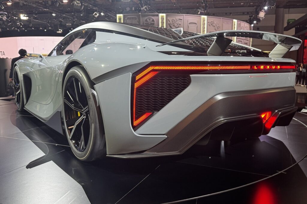 レクサス スポーツ コンセプトのリアは、3Dイルミネーション、カーボンディフューザー、そして流線型のウィングが印象的だ。