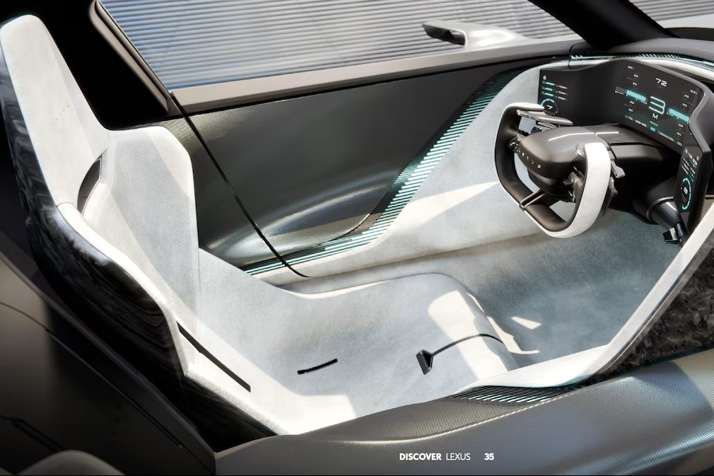 レクサスのコンセプトカーのインテリアは、ミニマルで明るくスポーティなデザインになっている。