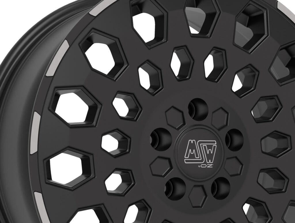 OZによってデザインされた「MSW99VAN」は、大小6角形のホールが並んだ力強く個性的なデザインが特徴で、カラーは 「MBP(マットブラック リップポリッシュ)」となっている。フィアット デュカト(Fiat Ducato)専用スペック(ハブ専用・純正ボルト対応)が設定されたことはデュカトオーナーには嬉しい限りだ。