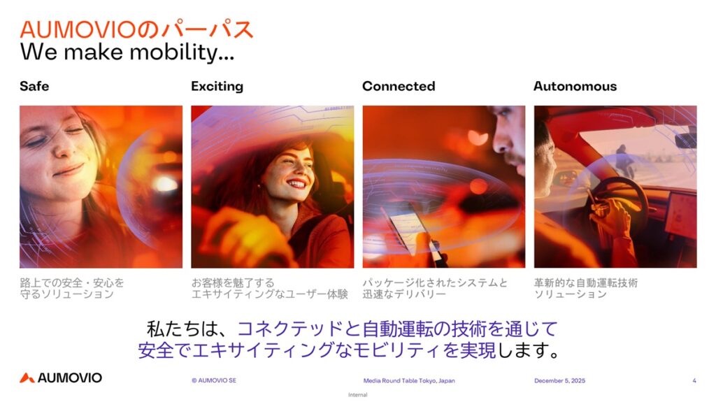 オモビオ株式会社は去る12月5日、都内赤坂の会場にて『コンチネンタルから独立し、新たに始動したAUMOVIO(オモビオ)。日本代表が語る未来のモビリティへのビジョンと戦略』と題した説明会を開催した。