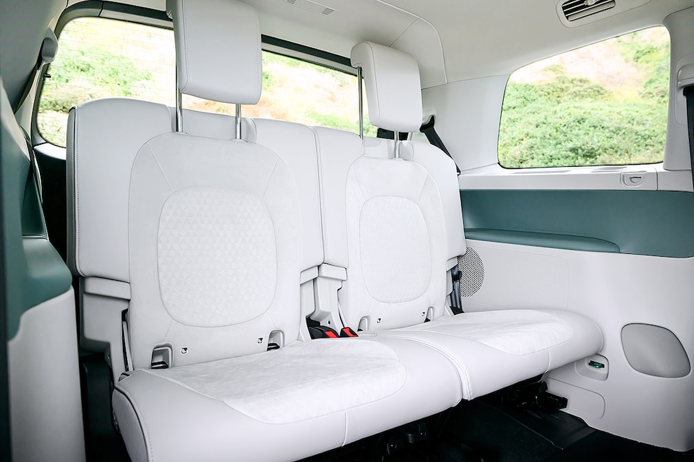 ロングホイールベースの「ID.Buzz」は、3列目の座席を設置することが可能になった。2名が着座できるが、2列目には、スライド式で折りたたみ可能な3人掛けベンチシート、または2つの快適なシングルシートから選択できる。3列目は、使用しない場合は折りたたむか、完全に取り外すことができる。