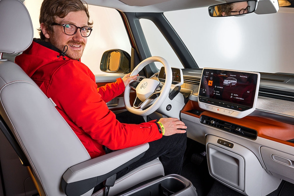 ステアリングは快適で正確、トルクステアの影響も皆無だ。最小回転半径5.5mにより、全長4.71mの電動ブリ(Bulli)でありながら、まるで皿の上を回るような感覚だ。この洗練された走りに、204馬力の電動モーターが“仕上げ”として加わる。ポルシェではボクサーエンジン、BMWでは直列6 気筒エンジンが恋しくなるが、このバスでは、過剰なガソリンエンジンやディーゼルエンジンは必要ない。