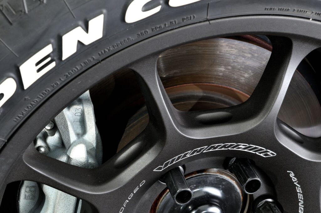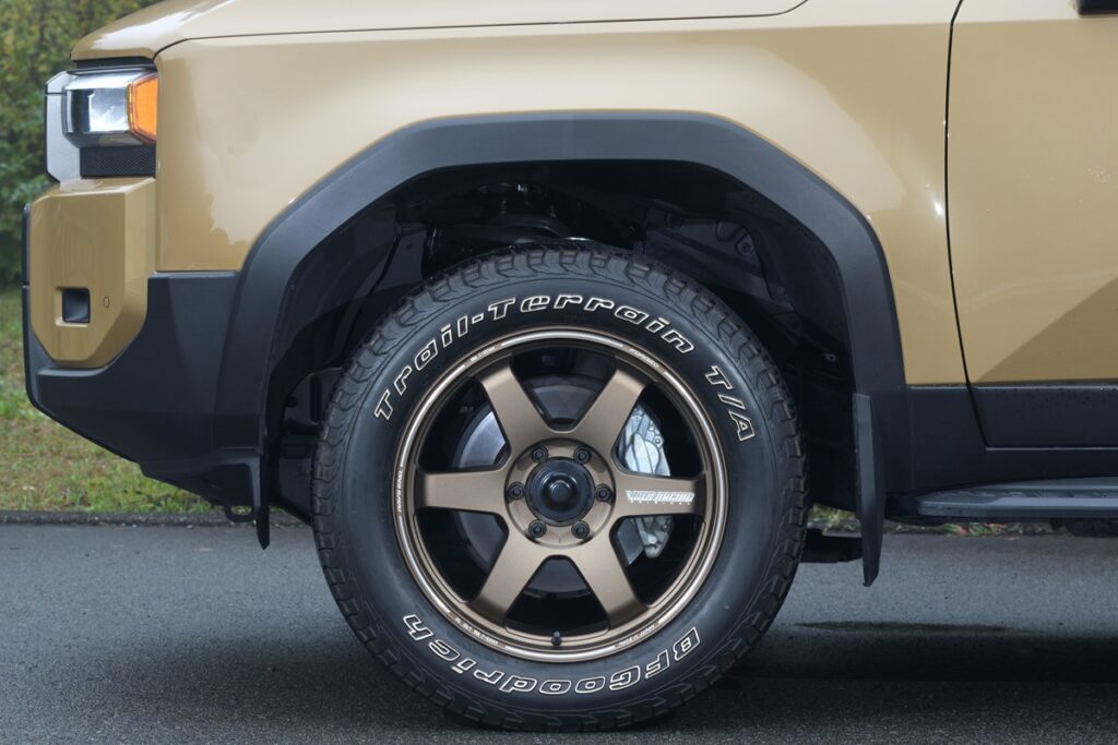 鍛造ホイールならではの高精度と優れた耐久性が、オフロード走行時の安心感を確実に底上げする。TE37のデザインと性能の奥深さには舌を巻く。