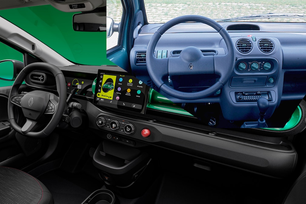 90年代に採用されていた、ダッシュボード中央のフードに隠された小さなデジタルスピードメーターは廃止された。その代わりに、新型「トゥインゴ」では、ドライバーはハンドル奥の7インチのディスプレイと、中央にある10インチのインフォテインメントスクリーンを見ることができる。