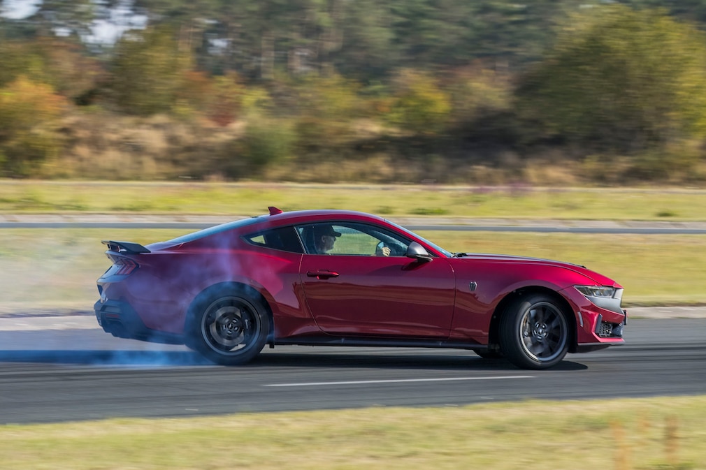 「マスタング ダークホース」でフォードは、排出ガス規制や騒音規制を考えれば、もはや実現不可能だと思われていたほど荒々しいクルマを、ドイツに投入した。アルミブロックのV8エンジンが、角度のついた4本出しテールパイプから放つ咆哮はあまりに過激で、アメリカのテレビ番組ならアクセルを踏むたびにピー音が入るレベルだ。