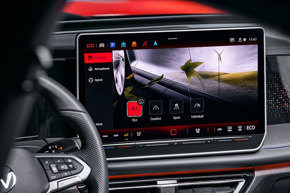 最新世代のインフォテインメントシステム(MIB 4)も「ティグアン」に搭載される。新しいIDA音声認識システム、カスタマイズ可能なホーム画面、そして画面上部に配置された自由に設定できるショートカットボタンにより、サブメニューを探し回る必要はほぼなくなる。長年ティグアンに乗ってきたユーザーにとっては、ステアリングコラムに移設された新しいシフトレバーに慣れるまで多少の時間が必要かもしれない。ワイパー操作はウインカーレバー左側に移され、走行モードはIDシリーズと同様、ダイヤルを回すことで選択する方式となっている。