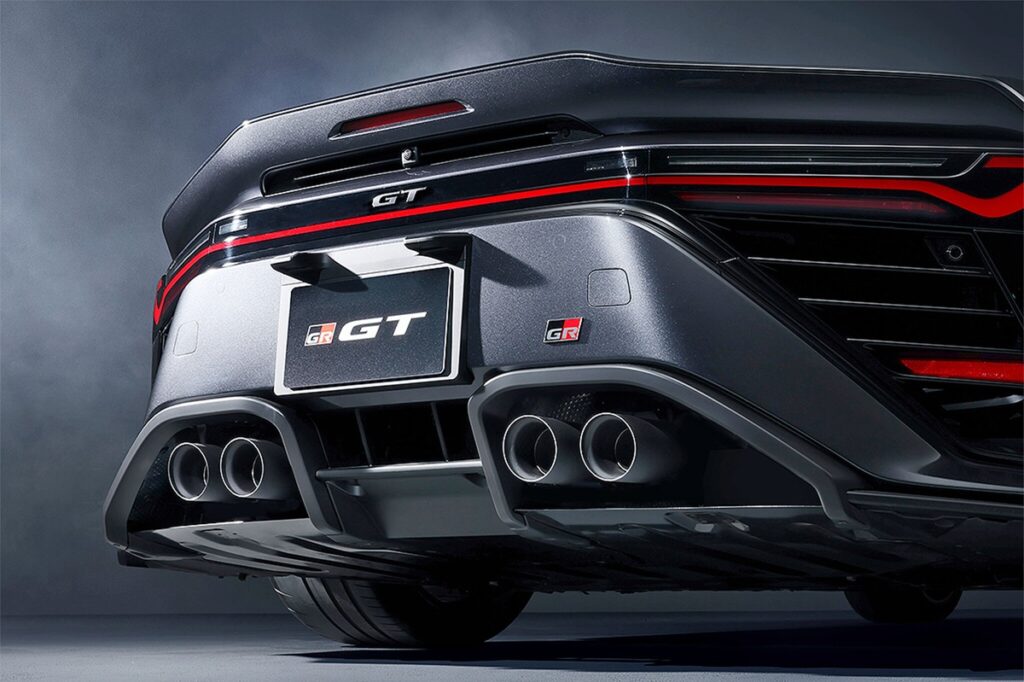 目標は、機能的な空力性能を実現することだった。そのため、自社のWECチームの専門家が相談に乗った。その結果、リヤに固定式のウィングを採用する必要がなくなった。その代わりに、「GR GT」は、連続したライトバンドの上に印象的なエッジを採用している。4本のテールパイプはディフューザーに組み込まれ、中央にわずかにオフセットされている。トヨタは、レースカーにインスパイアされたサウンドを約束している。