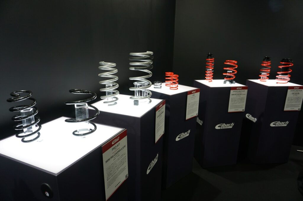 Eibach(アイバッハ)は定評のスプリングに加えて、「Sportline Plus」という新製品を展示。これは純正装着の電子制御ダンパーを活かしつつスポーツ性能をさらに高める車高調整ユニットで、電子制御対応による乗り心地と操縦安定性の両立を実現することができる画期的な製品だ。
