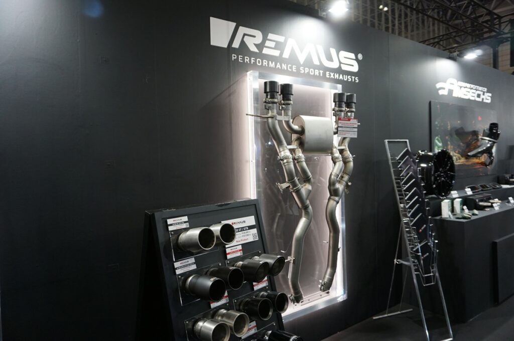 REMUS(レムス)のエキゾーストシステムにも注目だ。チタン、カーボンなど数種類あるテールエンドを選択することができるキャタバックシステムにより、レーシーなサウンドはもとより、外観をカスタマイズできるというユニークな商品だ。