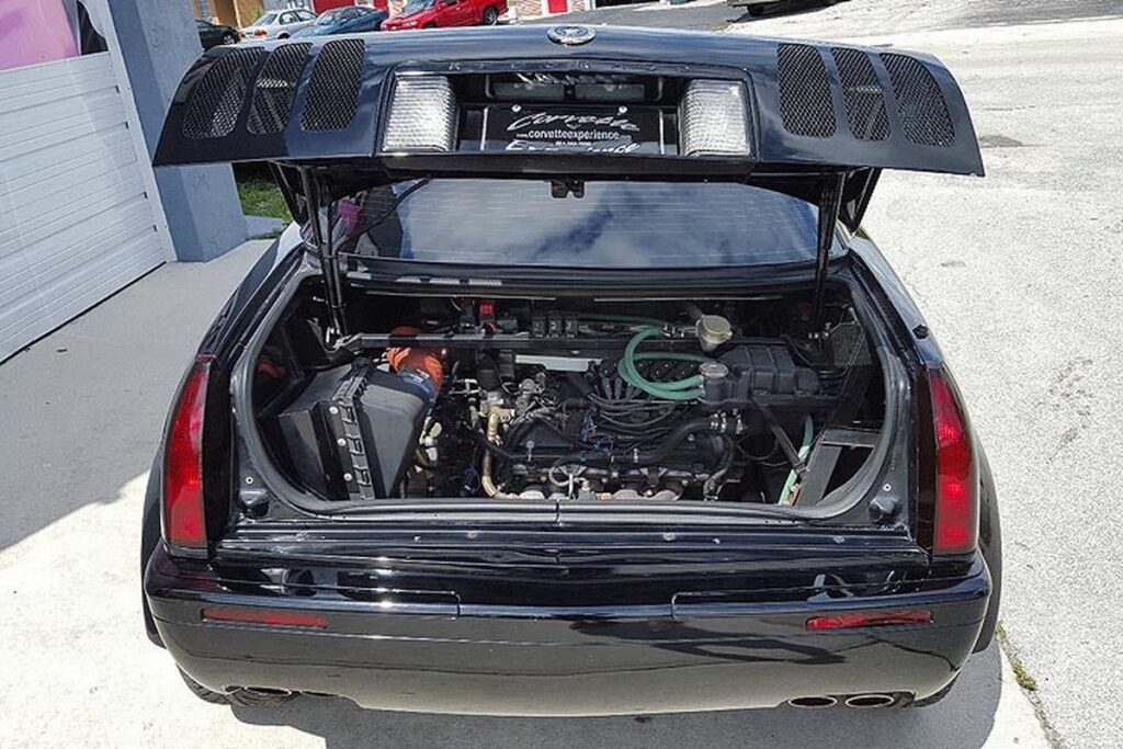 改造中に、彼は突然2つのエンジンというアイデアを思いつき、最初のプロトタイプは驚くほど良好に機能したそうだ。フロントのエンジンは、279馬力の標準的なノーススターV8で、当時のキャデラックらしく前輪を駆動していた。モスラーは、トランクに2基目のノーススターV8エンジン(より強力なバージョン)を搭載し、305馬力を後輪に伝達した。モスラーは当時、このシステムの出力を582馬力、800Nm以上と発表した。これは、25年前としては、非常に印象的な数値だった。