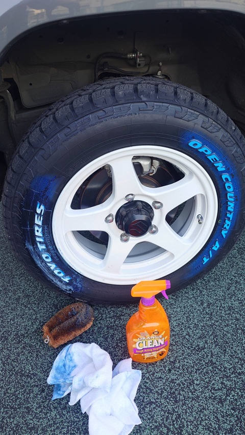 知ってました?ホワイトレターは白い塗料をスタンプしただけではありません。青い保護剤の拭き取り方は、サイドウォール全体に水またはぬるま湯をかけて、スポンジやウエスで擦り取るだけ。高圧洗浄機はタイヤを傷つける可能性があるので注意が必要。メンテナンスも含めてTOYO TIRESのWEBサイトにPDFが掲載されているので参考にしてください。