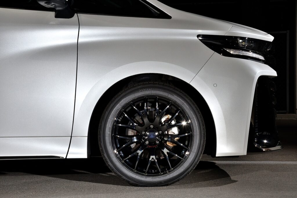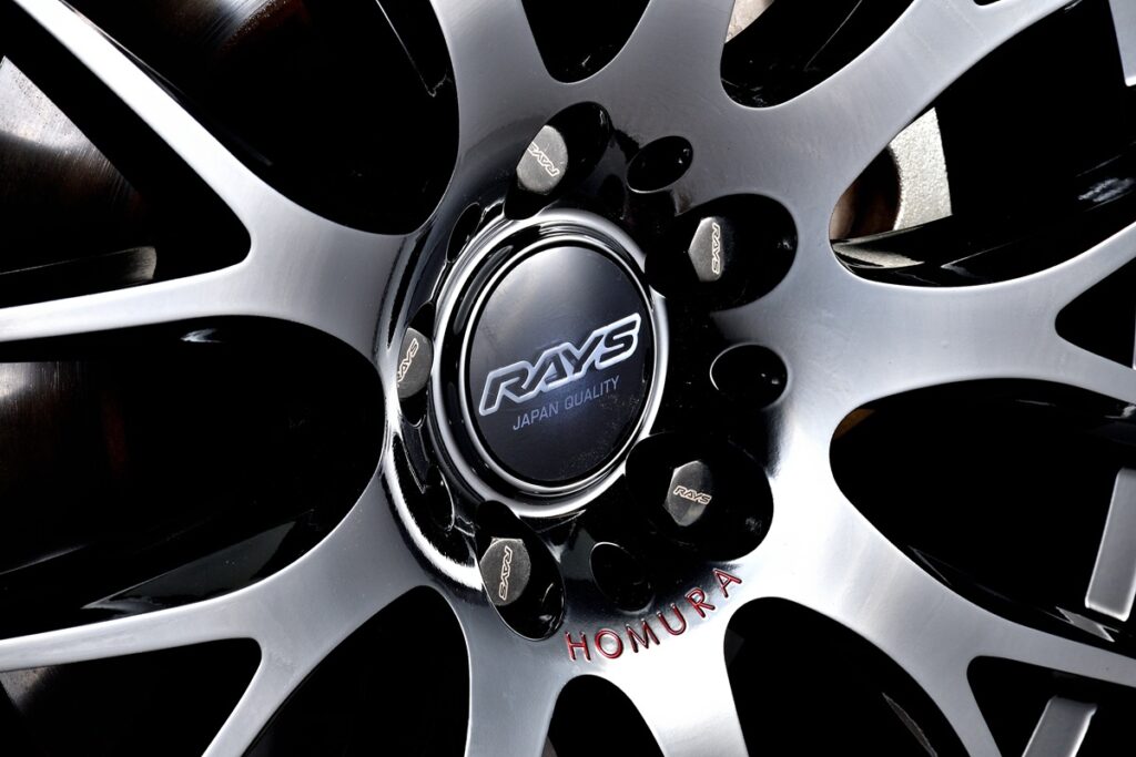 深みのあるジェットブラックが造形を際立たせる特別仕様。艶と陰影がヴェルファイアの高級感をさらに引き上げる。さらに、RAYSが持つ特許技術「RAP(レイズアートペインティング)」を駆使したワンポイント「HOMURA」のアクセントが、車両全体の雰囲気を引き締めつつ、さらなる高みへと誘う。