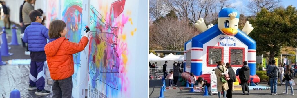 アネスト岩田の横浜本社で開催される「BLUE LINK FES.(ブルーリンクフェス)」は、「本社敷地を公園や空き地のように、新しい遊び場として地域の方に開放したい」という想いから、様々な、アトラクション、コンテンツが用意されたフェス。昨年は1500人ほどが参加している。