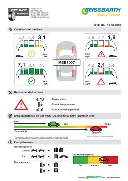 タイヤスキャン結果。残り溝+アライメントなどが表示される。