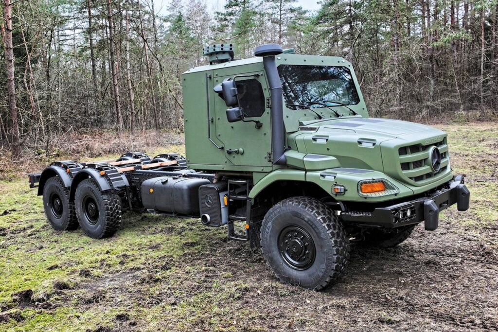 メルセデス・ベンツは、4軸、全輪駆動の8×8、保護キャビン付きまたはなし、2つの前輪操舵軸と2つの後輪軸、または1つの前輪操舵軸と3つの後輪軸から選択できる、高いオフロード性能を備えた「ゼトロス」も提供している。ヴェルトの主要工場では「ドイツ連邦軍オリーブ色」の塗装が施され、その後、ボディメーカーによって迷彩塗装が施される。ドイツ連邦軍のロジスティクス用トラックの改造は、モルスハイムで最大2週間かけて行われ、その後、ようやく軍隊に引き渡される。