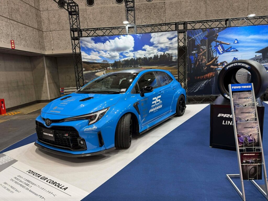 他にも多彩な展示車両がブースを彩っている。「BMW M2」、タイムアタック活動に使用されるR35型「GT-R」、限定色をまとった「GR Corolla」など、希少性の高いモデルを並べ、PROXESタイヤの幅広い対応領域を示した。