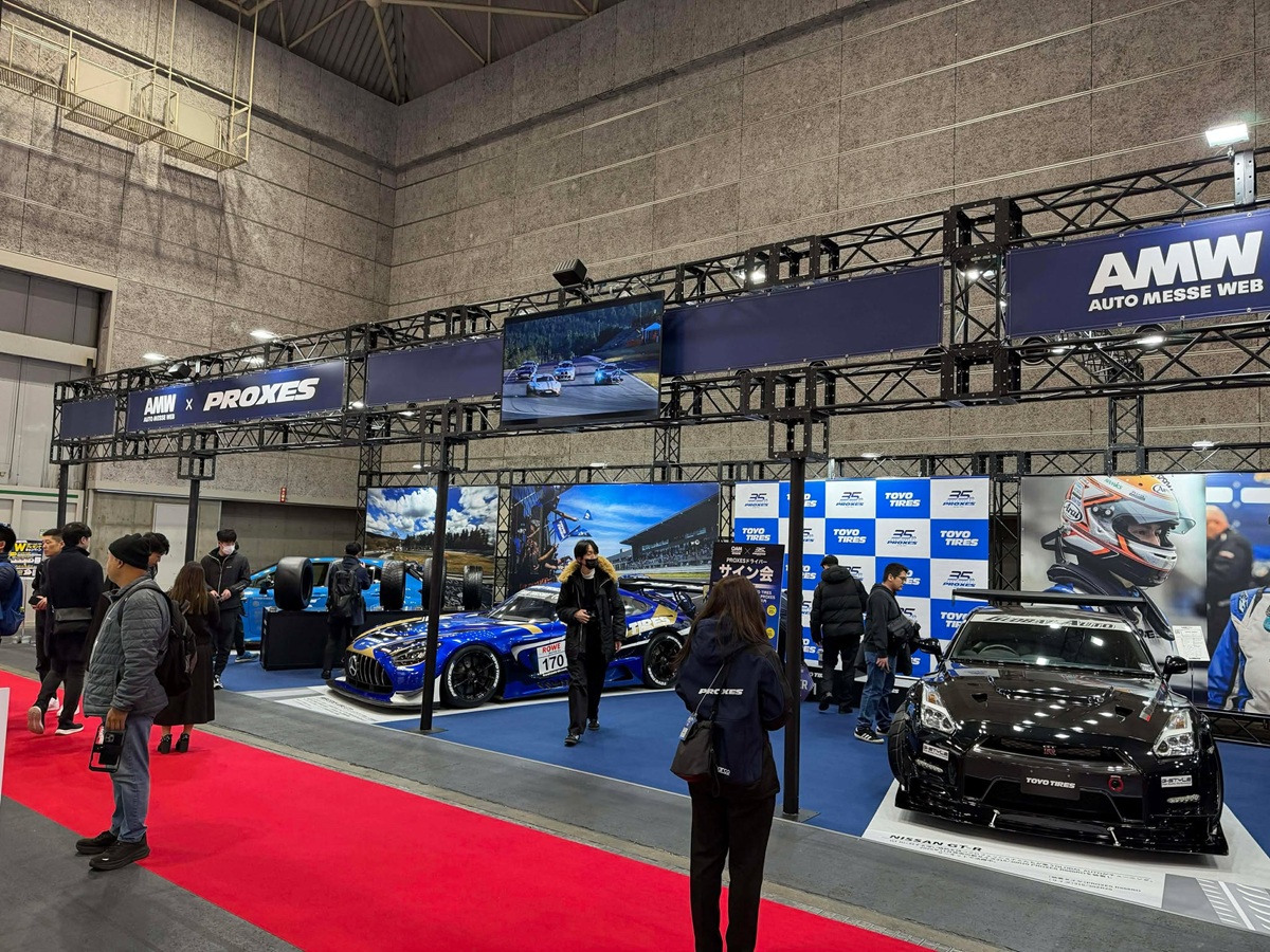 AUTO MESSE WEB×PROXESブースはPROXESブランドに特化したコラボ展示として構成され、同ブランドのモータースポーツ活動を象徴する車両が目玉となった。中でも注目は、ニュルブルクリンク耐久レースSP9クラス参戦車である「Mercedes-AMG GT3」の展示だ。これはPROXESがモータースポーツで培った技術力を来場者にわかりやすく伝える狙いがあるという。
