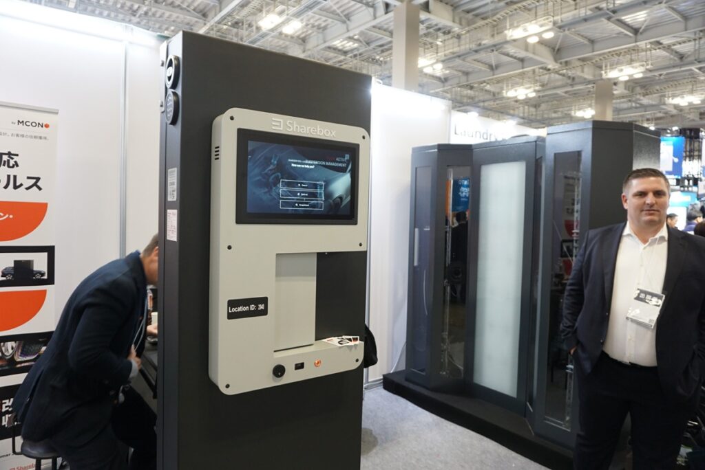 自ずとドイツ系の出展社に足が向いてしまうのはご容赦いただきたい。自動車ディーラー向け商材を扱うドイツに本社がある「MCOM」が持ち込んだのは欧州で注目を集めている「車両スキャナー」と「キーボックス」。いずれもディーラー利用者(顧客)のための装置で、「車両スキャナー」(右の装置)はボディ全体をスキャン(撮影)して小キズ、ガラスの飛び石キズ、凹みなどをAIも使ってチェックする。主に車を預ける際の状態チェックに使われる。「キーボックス」その名の通り、ディーラーの営業時間外でも車を預けたり、引き取りができるようになる装置。詳しくは「アプリ売りのオジさん彷徨記」をお読みください。