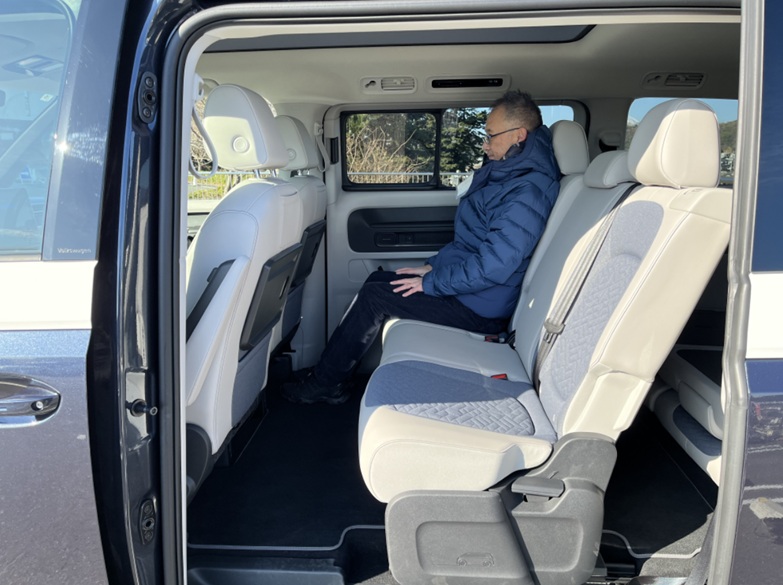 運転席、助手席共に1列目は、VWらしいしっかりとして座り心地の良いシートは好感が持てるが、2列目シートは国産高級ミニバンのような高級リムジンシートと比較すると高級感に欠け、上位グレードに位置するプロでも、ごく平凡な3人掛けベンチシートなため、残念に思う人がいるだろう。3列目シートは2列目同等の3人掛けシートが搭載され、大人が十分余裕を持って座ることができるサイズと空間があるので、長距離ドライブでも問題無さそうだ。一方で3列目シートを畳んで、ラゲッジスペースとして使用する場合、背もたれが倒れるのみで、国産ミニバンのようなシートアレンジに工夫が無いことから、広大な室内に対してラゲッジスペースが十分に確保されないことが残念である。このロングホイールモデルは、まさにバスとして常時3列目をシートとして使用することが前提ということか。