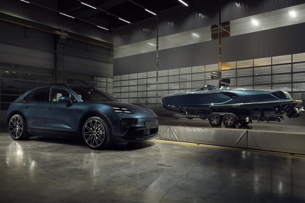【面白ネタ】道路と水上を走るポルシェの電動パワー 電動スポーツボート「フラウシャー 790スペクター」と海からインスピレーションを得た「マカン」のデザインスタディ