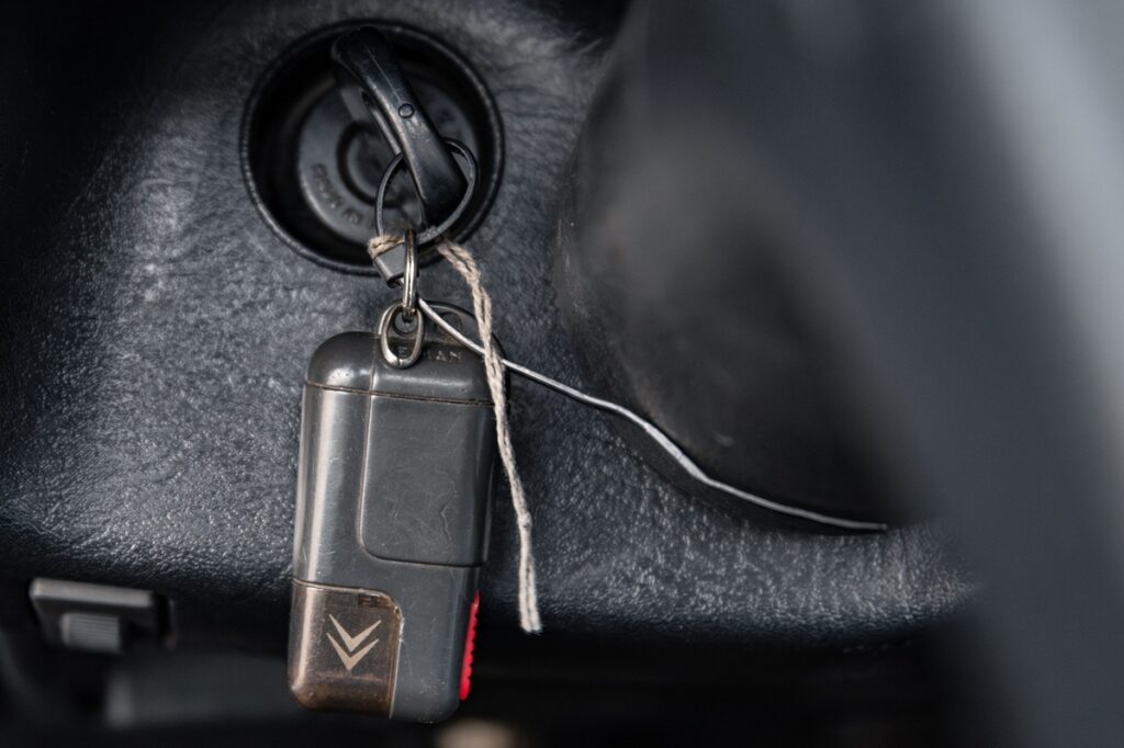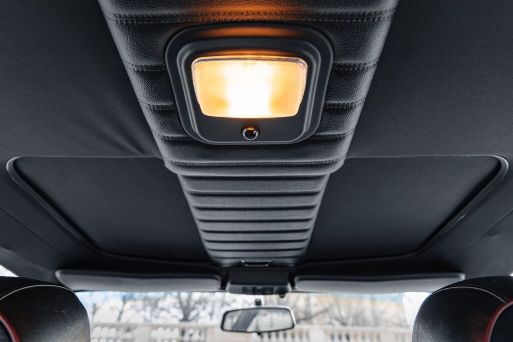 センターコンソールのCDラジオは純正ではない。書類にはBlaupunkt Arizonaカセットラジオのマニュアルが含まれている。キーはやや見栄えが悪い。ルーフ内張りには多少のシワがあるが、垂れ下がりはない。