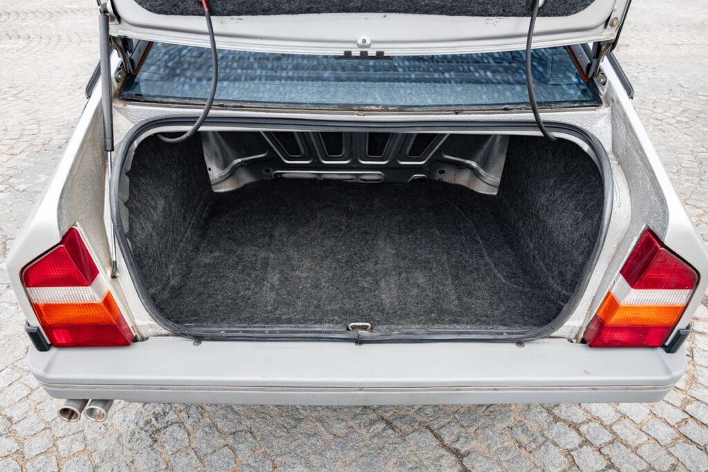 回答を待つ間、この1987年式シルバーの個体を詳しく見ていこう。新車同様とは言い難い。外装は良好に見えるが、広告には下回りや錆が発生しやすい箇所の写真は掲載されていない。フロントの大型レザーシートには美しいパティナがある。歴史を物語る風合いだ。ただし、より丁寧なケアが施されていれば、現在でもっと柔らかく新鮮な質感を保てたはずだ。全体としては魅力的で望ましい個体である。
