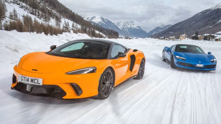 【ウインターテスト】ミッドシップスーパースポーツカーは雪が苦手?「マクラーレン GTS対フェラーリ 296 GTS」雪上ではマクラーレンとフェラーリが、これ以上ないほど接近する