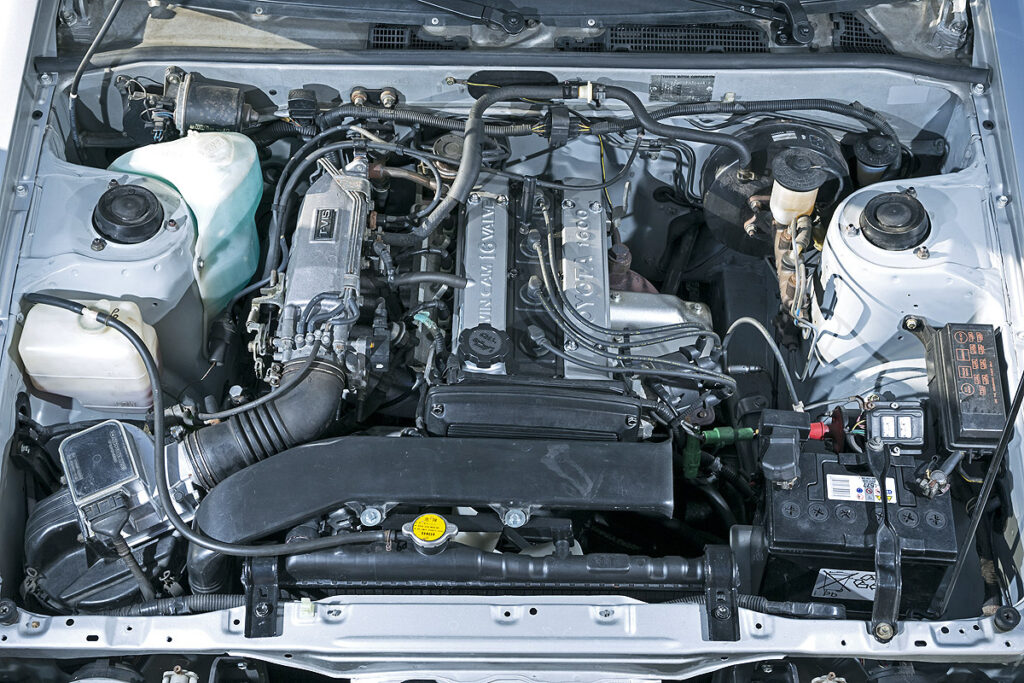 80年代のスポーツカーとしては驚くほど先進的だ。VWがGTI用16Vを開発していた頃、日本ではすでに4バルブ技術が高回転・高出力を実現していた。ドイツ仕様のAE86も124psを発生する1.6リッター直4を搭載。