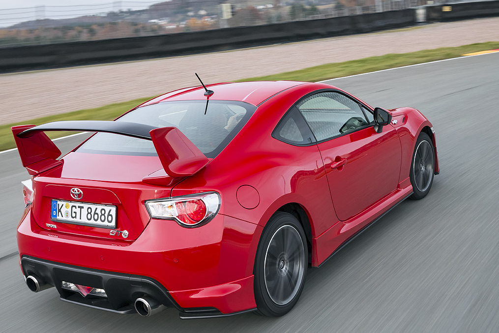 「トヨタ GT86」のデザインは、1967年の「トヨタ 2000GT」に着想を得ている。低く構えたフロントグリルと鋭いヘッドライトが、「GT86」のスポーティなキャラクターをいっそう強調する。さらにアグレッシブな外観を求める向きには、テスト車両に装着されたエアロパッケージが1400ユーロ(約26万円)で用意されている。巨大なリアウイング、フロントスポイラー、そしてサイドスカートを備えた本格仕様だ。
