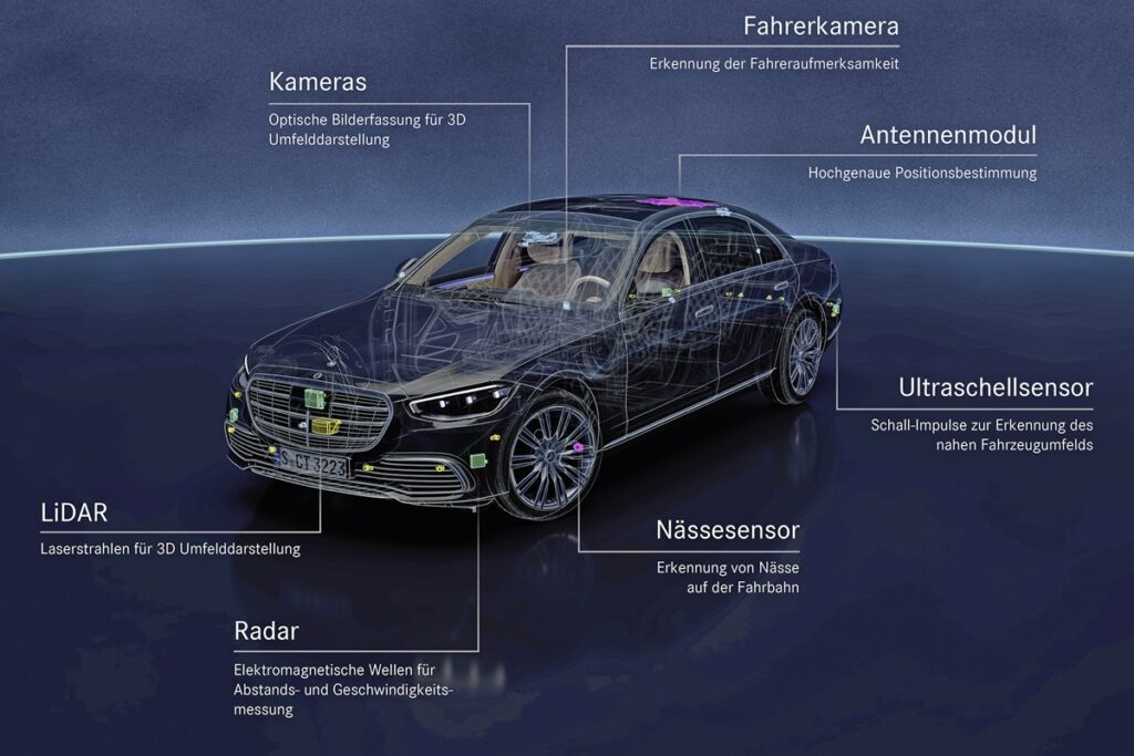 新型メルセデス Sクラスは、そのために必要なすべてを備える。新開発のMB.OS、最先端のセンサー群、LiDAR、カメラ、そしてレーダーだ。