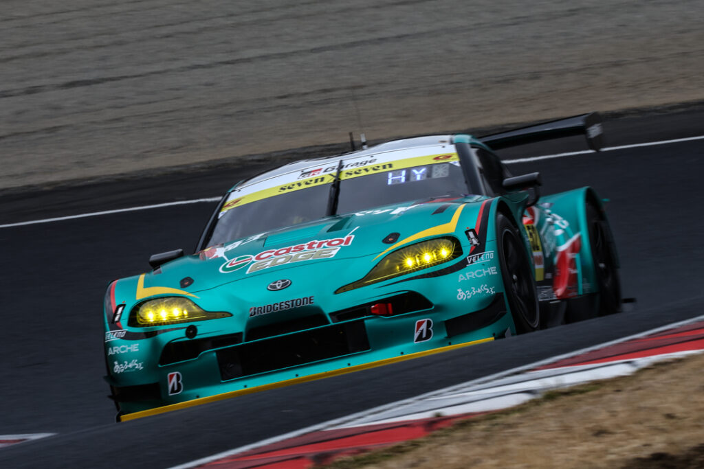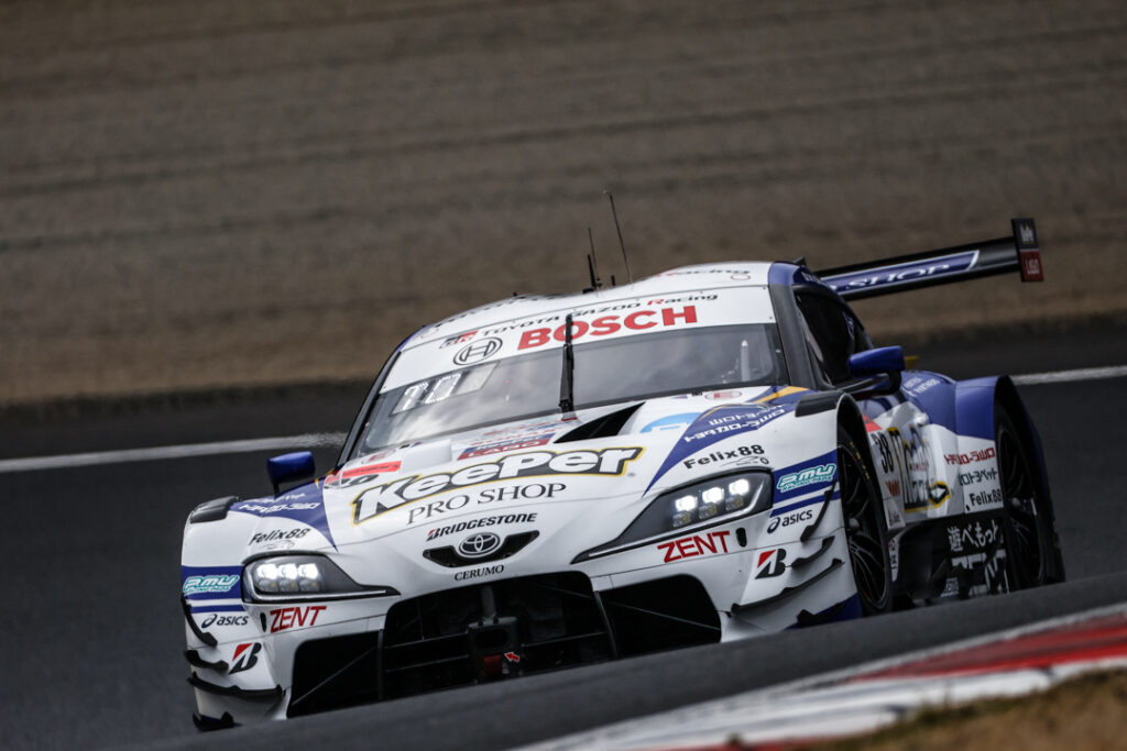 セッション3は路面には前夜の雨が残り、No.38 KeePer CERUMO GR Supraのルーキーの小林が走り始めのバックストレッチで冷えたタイヤがグリップを失ったかクラッシュをしてしまうアクシデントもあったが、各車様子を見ながらコースインをしラップを重ねていた。