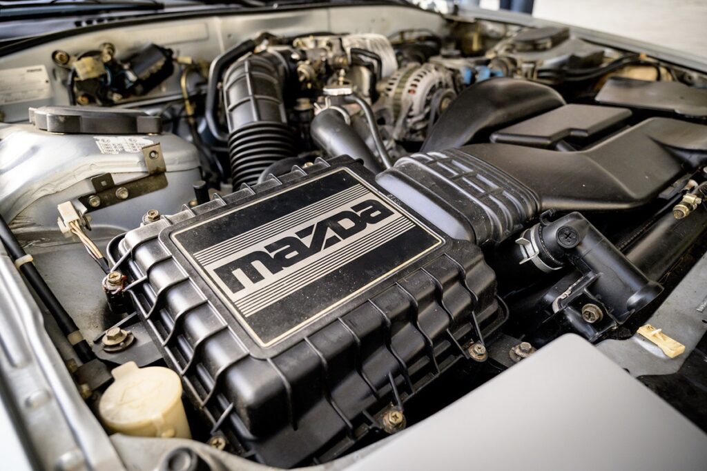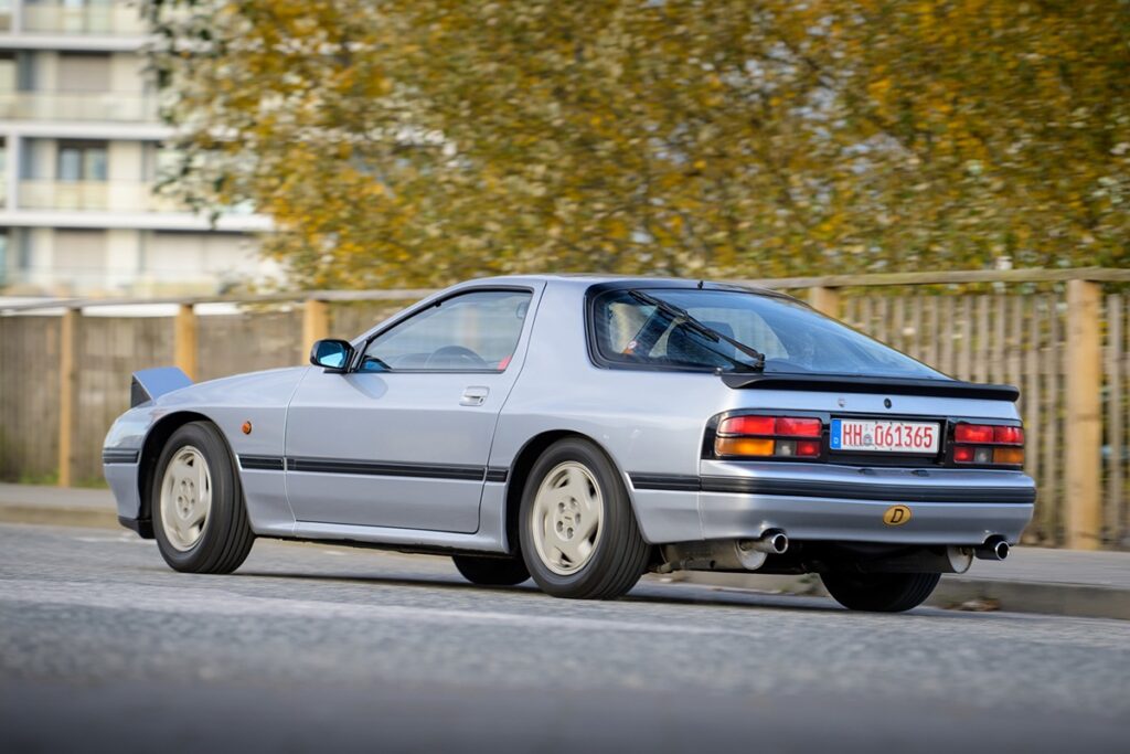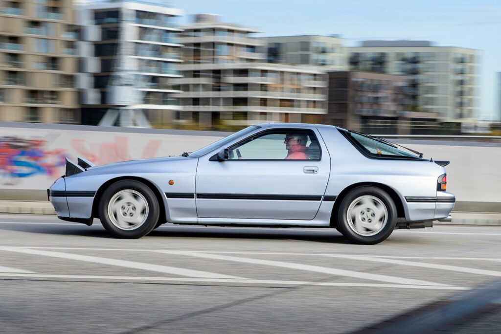 「RX-7」は1978年から販売され、1986年には『AUTO BILD』誌で紹介された第2世代モデルが登場した。技術面や構造面では、かなり先進的な車だった。フロントエンジン、後輪駆動、車重1,205kg、低重心(ロータリーエンジンによる)。フロントはマクファーソンストラット、リヤはパッシブ ステアリング効果を備えたマルチリンク式独立懸架。ラック&ピニオン式ステアリング、フロント(4ピストン固定キャリパー)およびリヤ(フローティングキャリパー)にベンチレーテッドディスクブレーキを採用。150馬力を存分に楽しむための、実に洗練された技術だった。