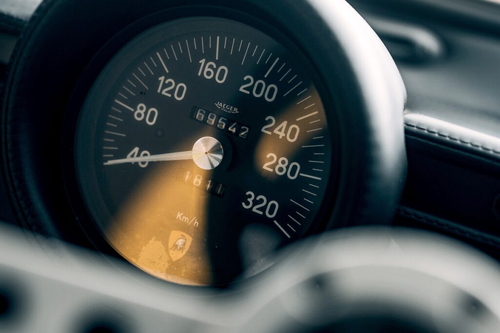 だからこそ、「ミウラ」を運転する際は、より一層先を見越して走行する必要がある。小さな円形スピードメーターでは、どれほどの速度で走っているのかが判別しにくいという点は、それゆえにさほど問題ではない。特に「ミウラ」にはもう一つ、奇妙な特徴がある。最高320km/hまで表示されるスピードメーターの目盛りは、40km/hからしか始まらないのだ。それまでは、針は微動だにしない。まるで「ミウラ」がドライバーにこう言っているかのようだ。「時速40km以下なんて、まったくやる気が出ない!」