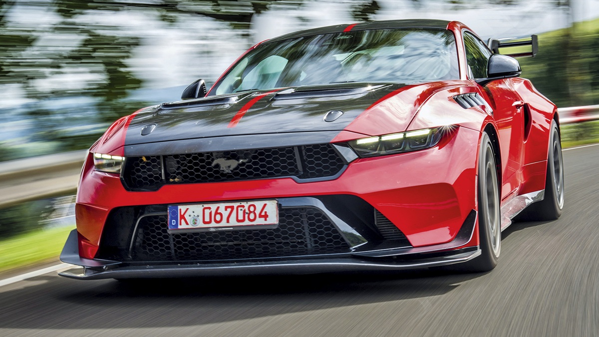 なぜこのマスタングはドイツの道路を待っていたのか?これと比べれば、「ボス(Boss)」や「ダークホース(Dark Horse)」でさえ、ふれあい動物園のポニーに過ぎない。GTDはマスタングの名を冠した公道用の真のトラックツールとなり、史上最も過激なフォードとなった。